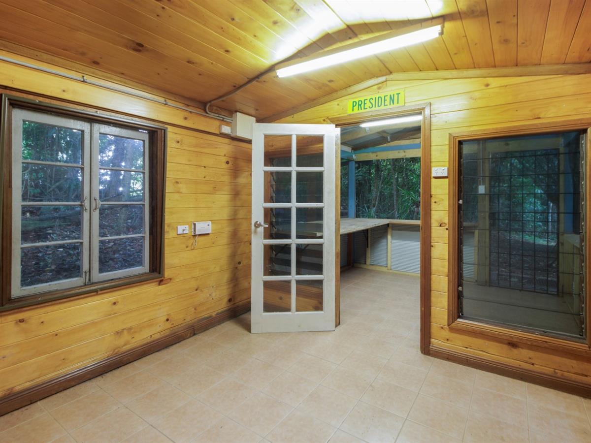 A two roomed separate Art Studio is situated high up on the block with all the facilities of power, water and high-speed internet available although it is not yet fully renovated. The location like the main dwelling is elevated and enclosed with mesh in the rainforest with 180 degree views and the scent of the forest.